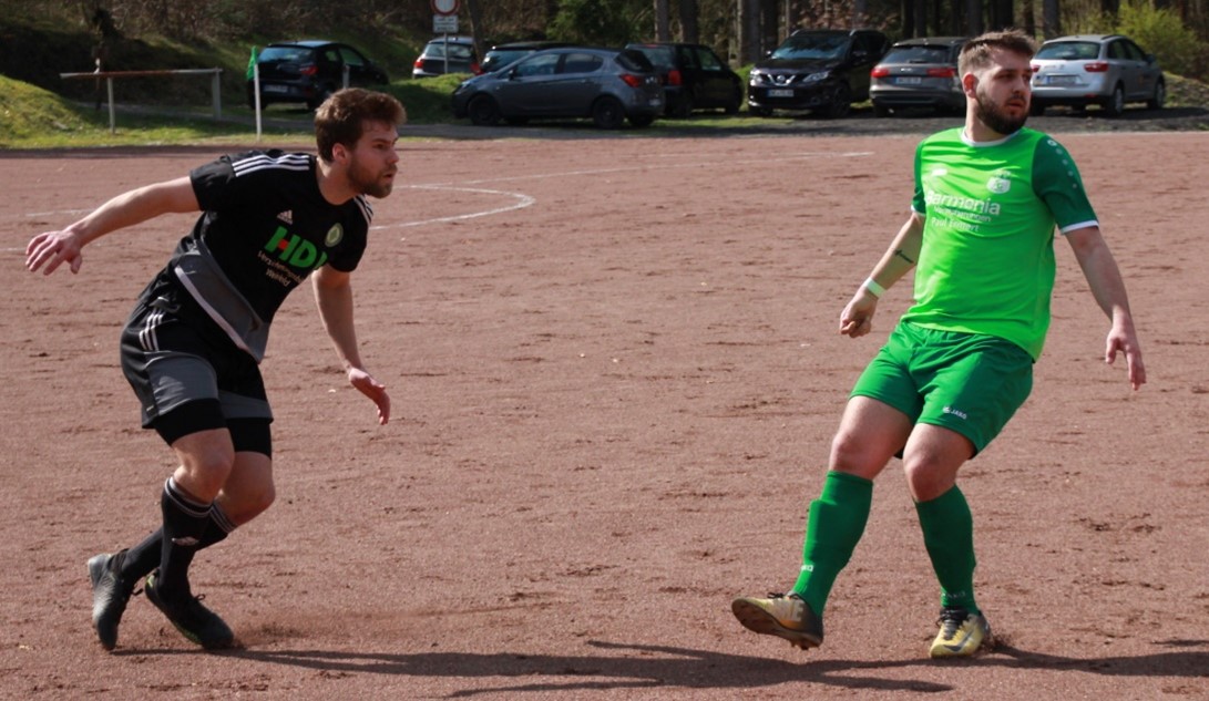 Herdorfs letzte Reise nach Niederdreisach endete vor anderthalb Jahren mit einer 2:3-Niederlage. Nach zwei Eigentoren der SG erzielte Max Ermert (links) kurz vor Schluss den Siegtreffer für den VfB. (Foto: Thorsten Buchner)